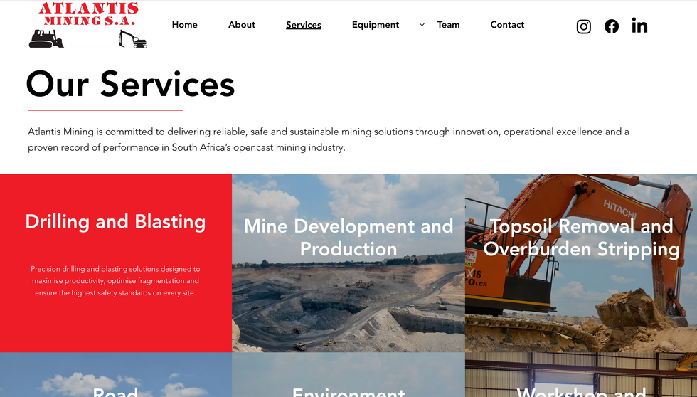 Development of a print ads, social media posts, website redesign and photography. We redesigned the website for Atlantis Mining to be cleaner, more user friendly, optimised for SEO and using images of the company's equipment. We helped Atlantis Mining develop a visual and brand identity that is now more evolved and modern than just having a logo. We wanted to give the company a larger visual presence across all of their communication platforms and deliver brand consistency.
